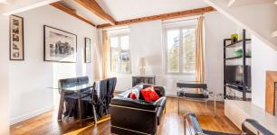 EXCLUSIVITE Situé sur une très belle avenue du 7ème arrondissement au 4ème étage (avec un ascenseur) d’un joli immeuble ancien. Un charmant appartement de 49,15m2 (Loi Carrez) et 65,55m2 au sol composé d’un grand salon donnant sur l'avenue, d’une chambre avec une vue sur les toits de Paris et la Tour Eiffel, d’une salle de douche avec un WC et d’une cuisine, d'un mezzanine pouvant servir d'une 2ème chambre ou d'un bureau. Charme de l'ancien, parquet, cheminée, poutres apparentes, grande hauteur sous le plafond.