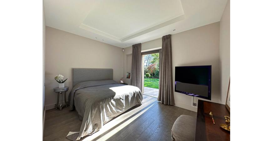 L'étage supérieur abrite quatre chambres, chacune décorée avec soin, un dressing et trois salles de bains.